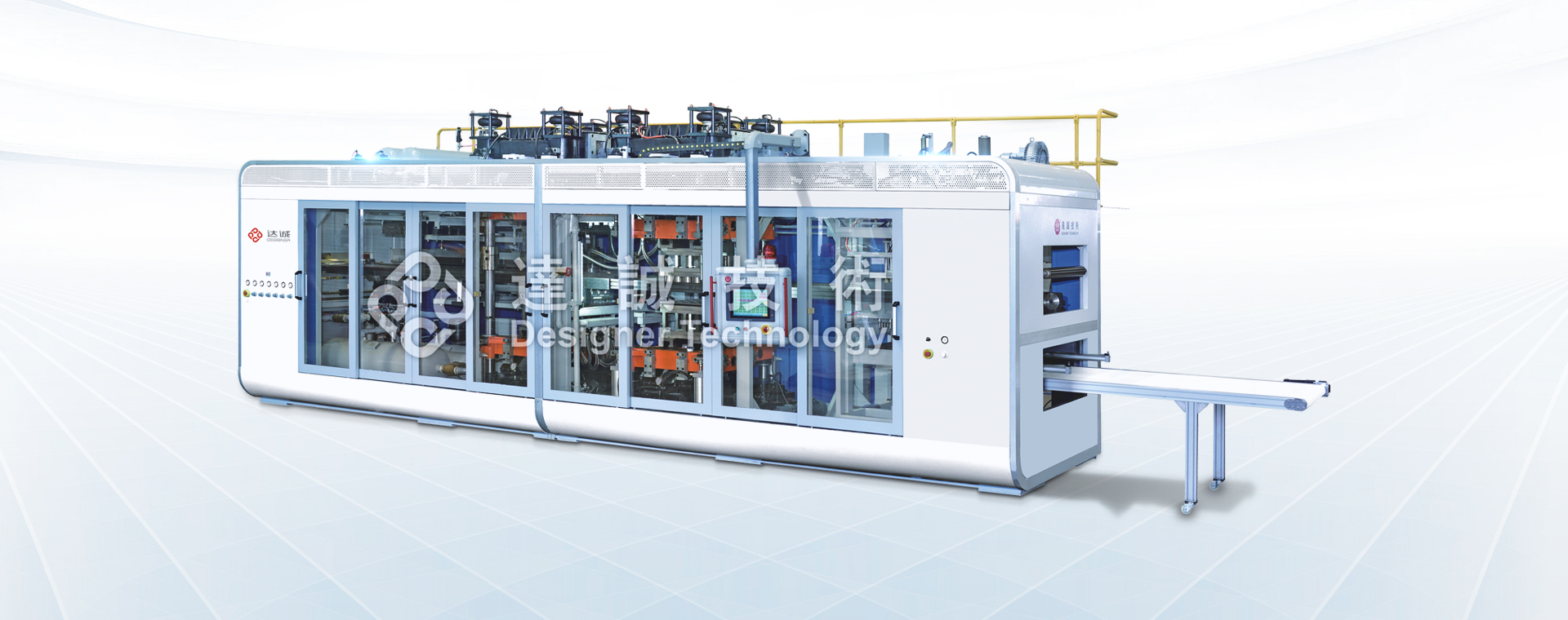 成型工位、沖孔工位、沖剪工位采用上下兩組伺服電機控制,驅(qū)動偏心輪連桿結(jié)構(gòu)分別帶動兩模臺上下運動并配備正負壓氣源,可實現(xiàn)產(chǎn)品正負壓成型。